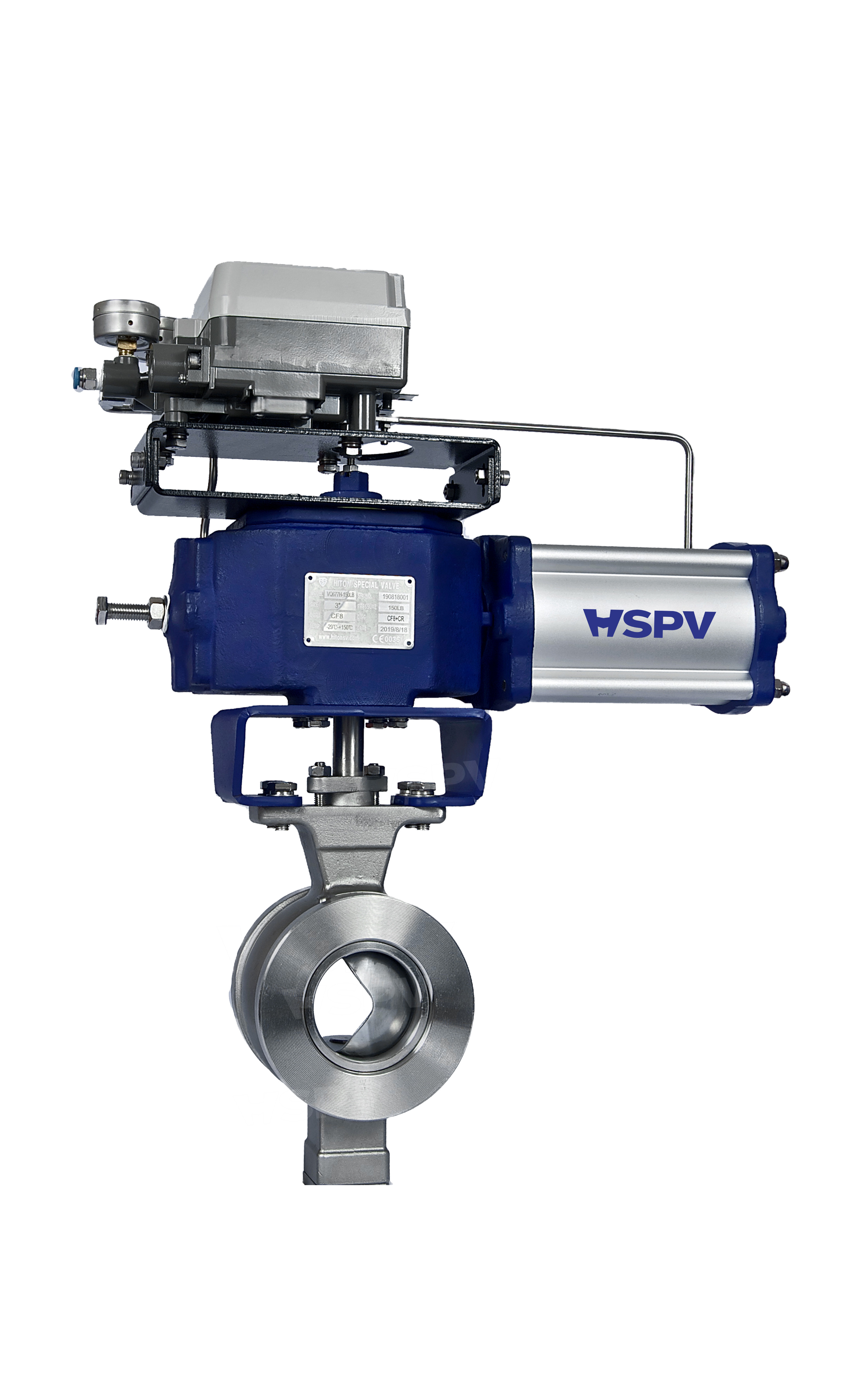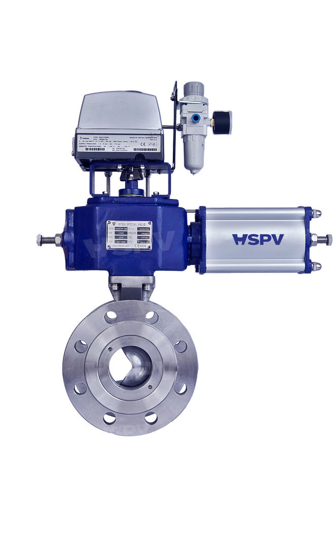对夹 V 型球阀作为一种直角回转的高级控制阀,在行业中具有显著的优势。它的启闭件是带特殊 V 型开口的半球体,具有锋利的刃口。在球体回转过程中,密封面具有强有力的切断力和自清洁功能。球体的 V 型开口与阀座流道形成一个扇形区域,在回转过程中可改变流道面积,形成对介质的线性等比例精确调节。因此,对夹 V 型球阀同时具备调节和开关两种功能,能够满足各种复杂的工业流体控制需求。