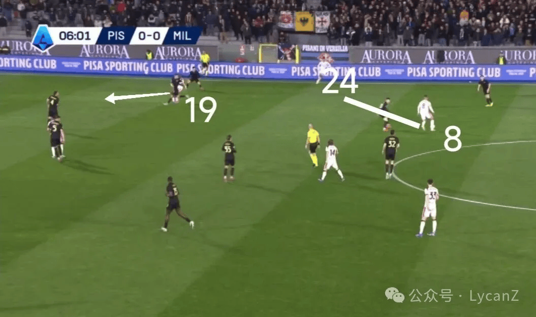 中卫三人组触球最少的都有94次,加上拖后梳理组织的莫德里奇同样有高达110次触球,米兰全场占据66%的控球率,从这一点看,主队比萨的压迫强度并不高,给米兰后场相对宽松的传球环境。